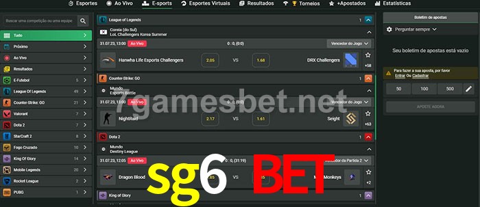 O sg6 bet oferece uma grande seleção de opções de apostas em e-sports com probabilidades competitivas